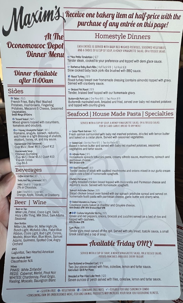 Welcome to Maxim's at Oconomowoc Depot, where culinary delights meet a charming ambiance inspired by the train era. Nestled at 115 E Collins St, Oconomowoc, this eatery is a feast for the senses, offering a menu that celebrates both comfort and creativity.